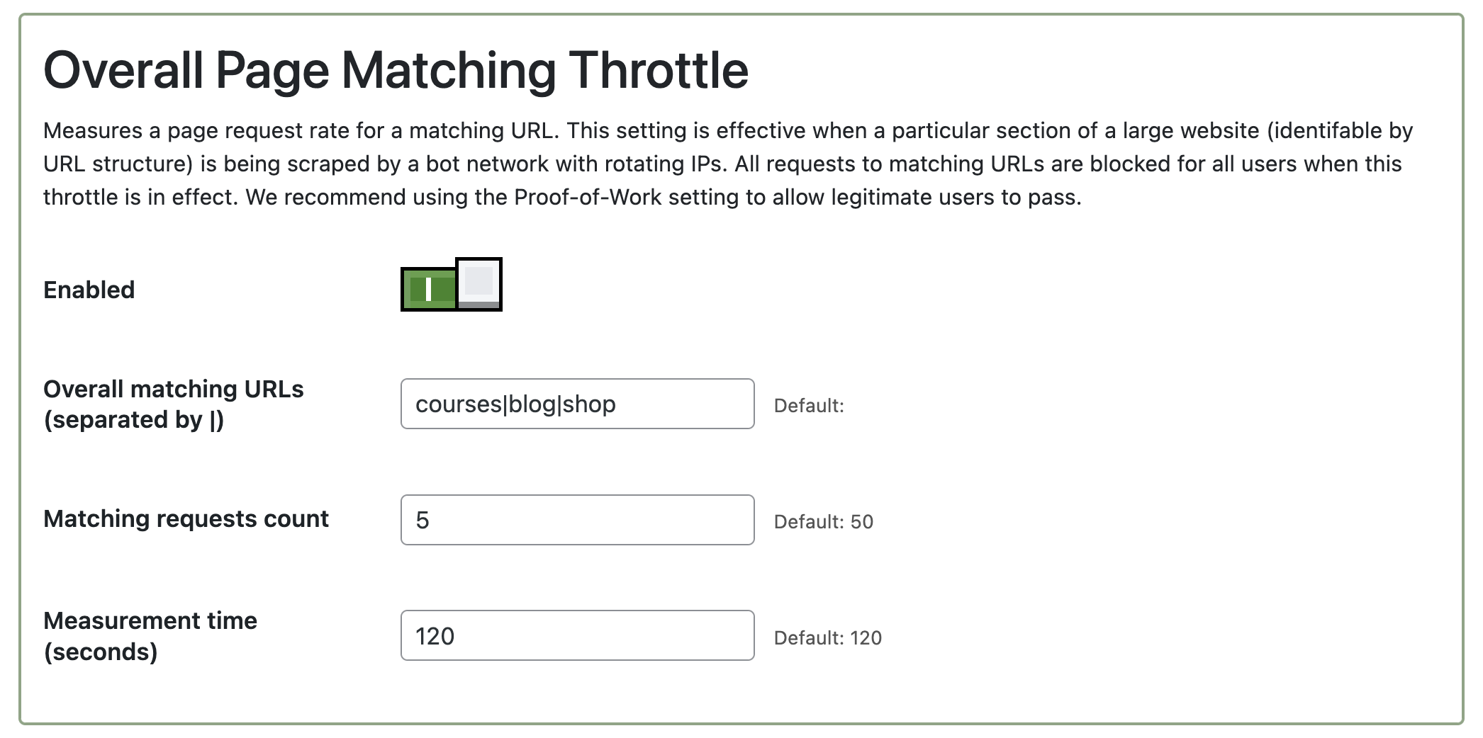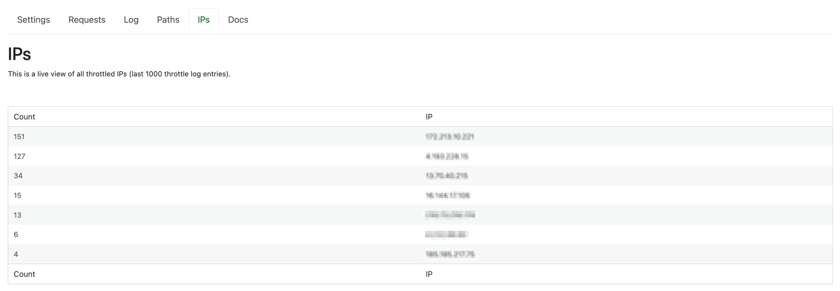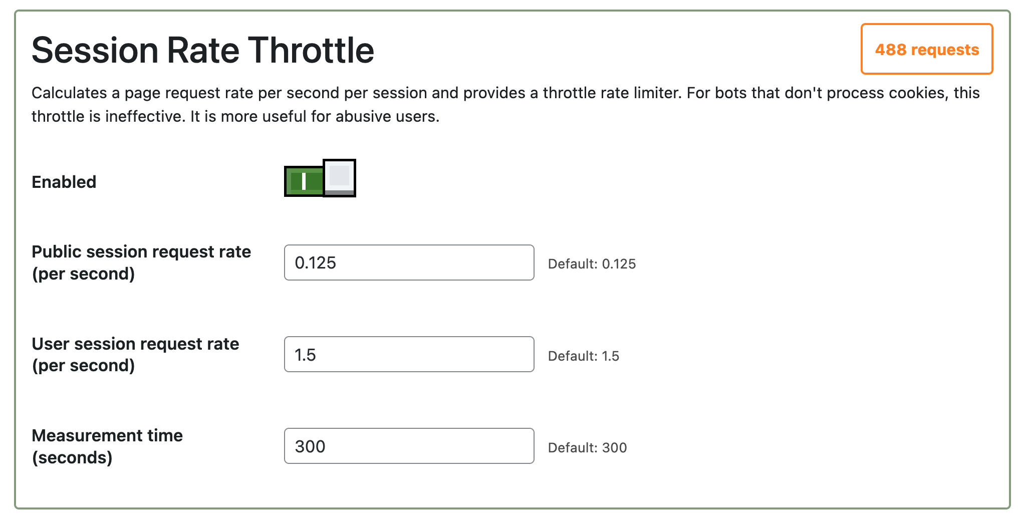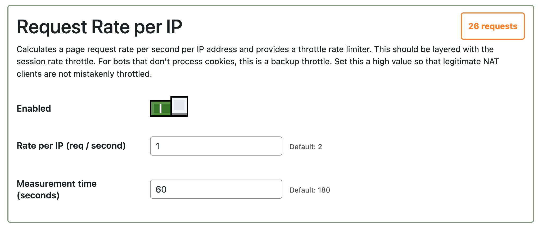 Overall request rate. Bottle can throttle specific sections of a website that are being abused by bots. (For instance, the courses catalog.) This is useful when a large website is being scraped by a bot network with rotating IPs.