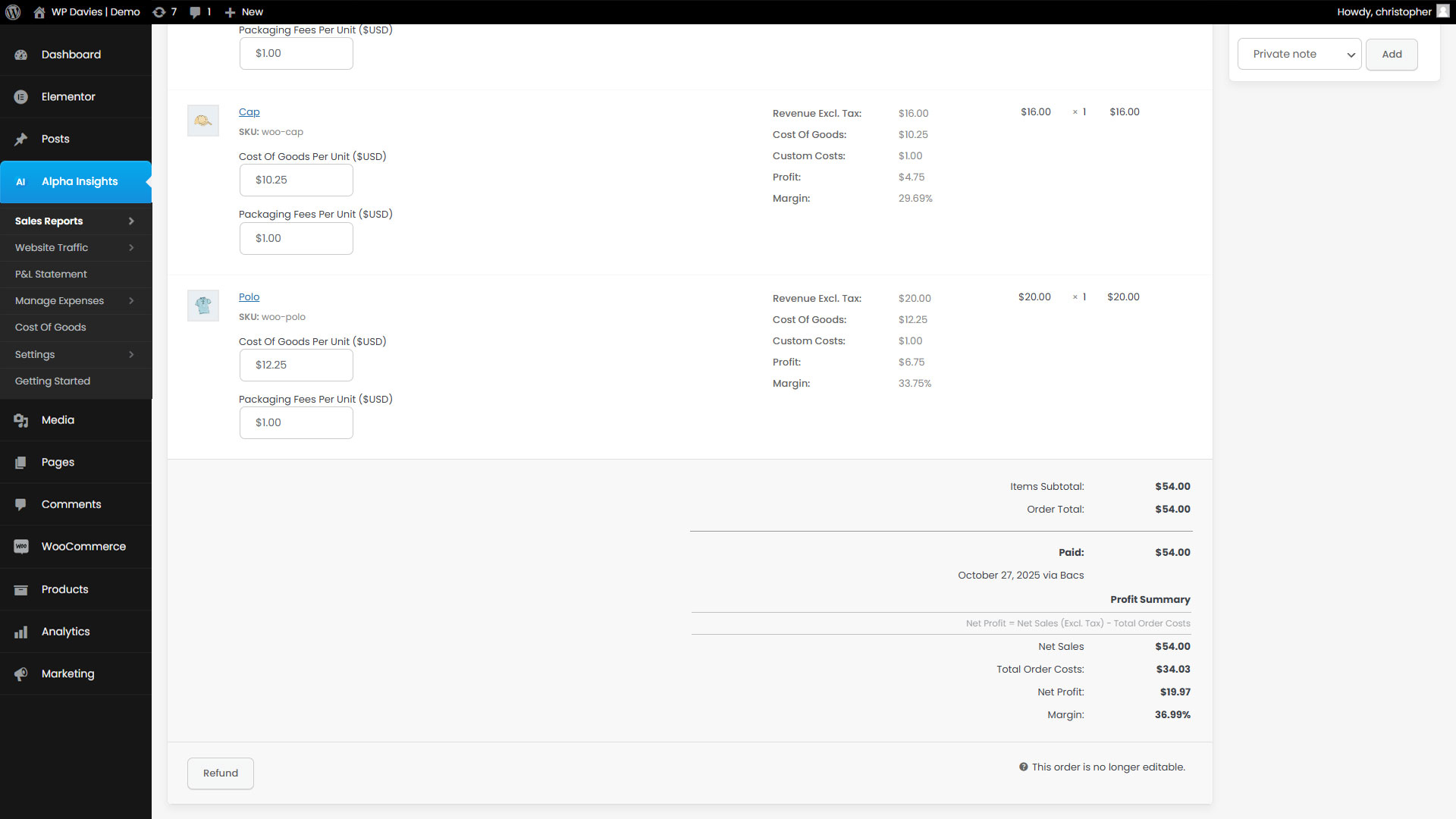Alpha Insights isn’t just another Cost of Goods Plugin — it’s a complete WooCommerce analytics and profit management platform.