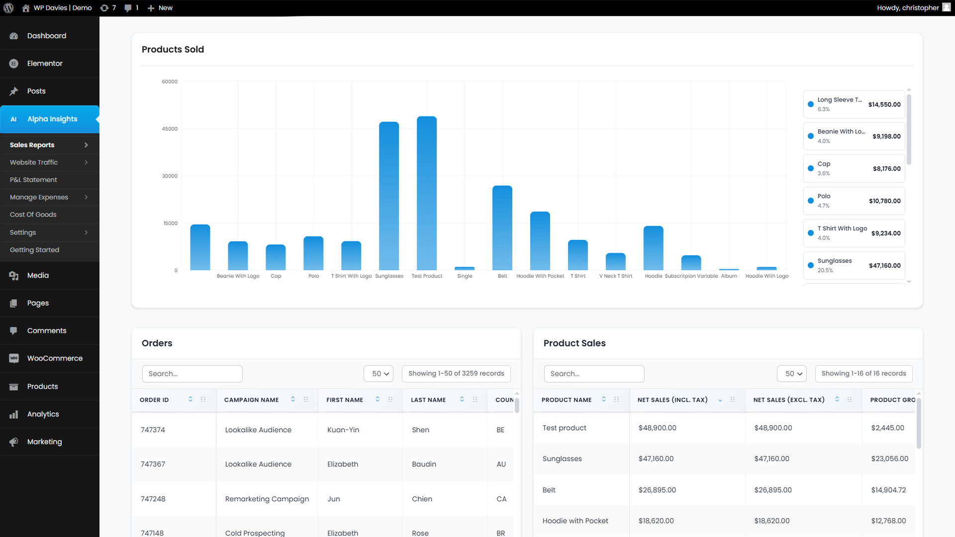 Alpha Insights isn’t just a drag-and-drop report builder — it’s a complete WooCommerce analytics and profit management platform.