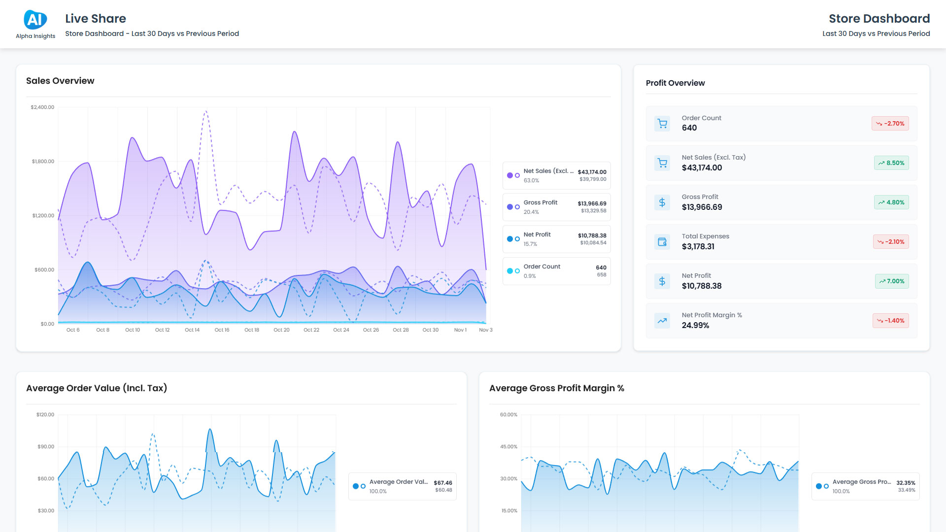 Alpha Insights gives you total control over how your data looks, feels, and performs. Whether you’re exploring sales, costs, or campaign results, our React-powered builder lets you shape insights that matter most to your business.